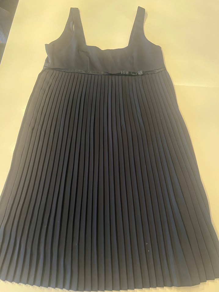 Siyah renkte, straplez yaka ve pilili etek detayına sahip, midi uzunlukta, kolsuz ve vücuda oturan kadın elbisesi. Hamilelikte de çok rahat oluyor