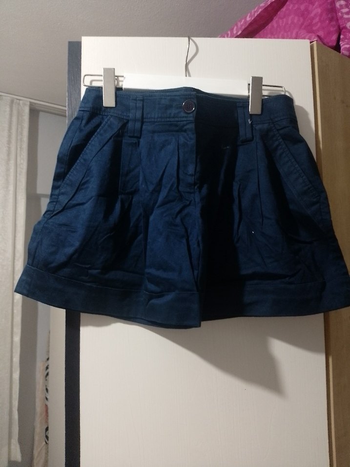 Lacivert renkte, bol kesim ve pilili detaylara sahip mini denim etek. Günlük ve sokak stiline uygun. hiç kullanılmadı