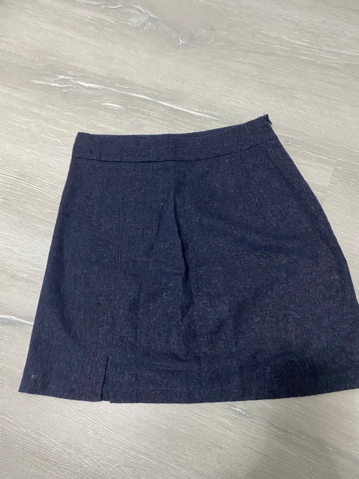 Lacivert renkte, pilili ve dar kesimli mini uzunluğunda etek. Ofis için uygun, sade ve rahat bir görünüme sahiptir.