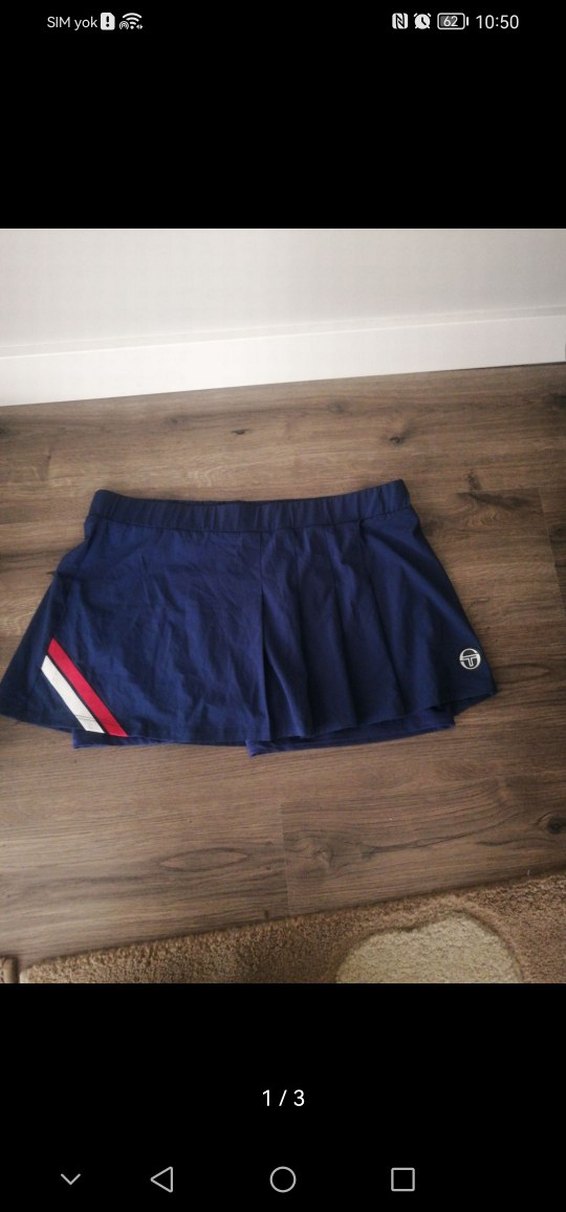 Lacivert renkli, pilili ve sentetik kumaştan yapılmış, sportif tarzda, Kırmızı ve beyaz şerit detayları bulunur. ♀️