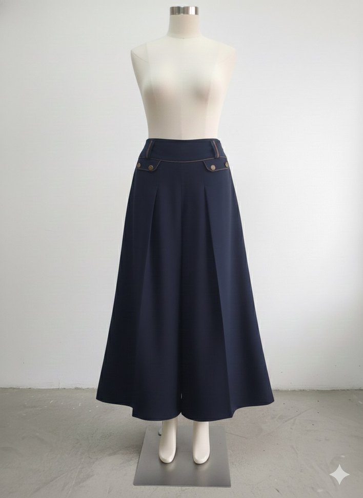 Lacivert renkte, pilili ve regular fit kesime sahip uzun etek. Sentetik kumaştan üretilmiş, ofis için klasik Paris tarzında uygun. ✨
