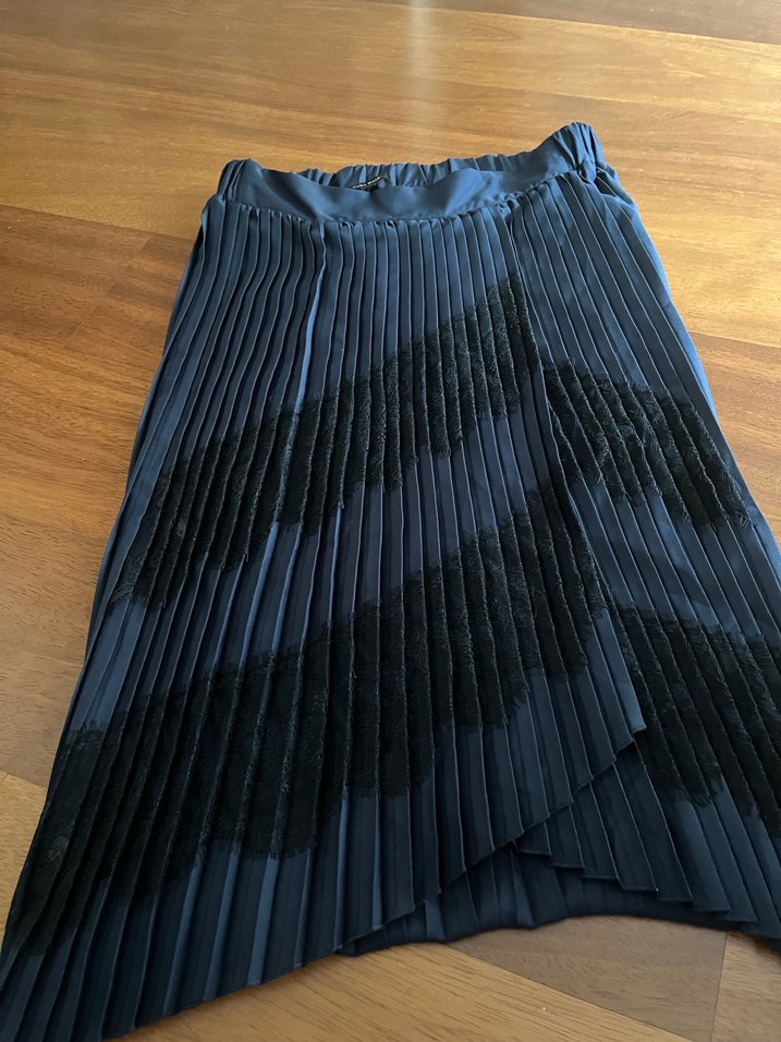 Lacivert uzun pilili etek, sentetik kumaştan ve bol kesimlidir. Gotik ve avant-garde tarzıyla günlük kullanıma uygundur.