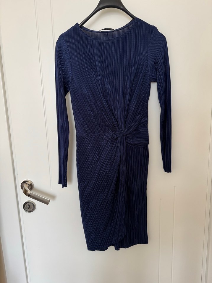 Lacivert renk, uzun kollu, pilili ve vücuda oturan kesime sahip kadın elbisesi. Yuvarlak yaka ve çağdaş tarzda. 1 defa giyildi, XS beden ancak ben S bedenken de çok rahat oluyordu. Mango marka ve hiçbir kusuru bulunmuyor