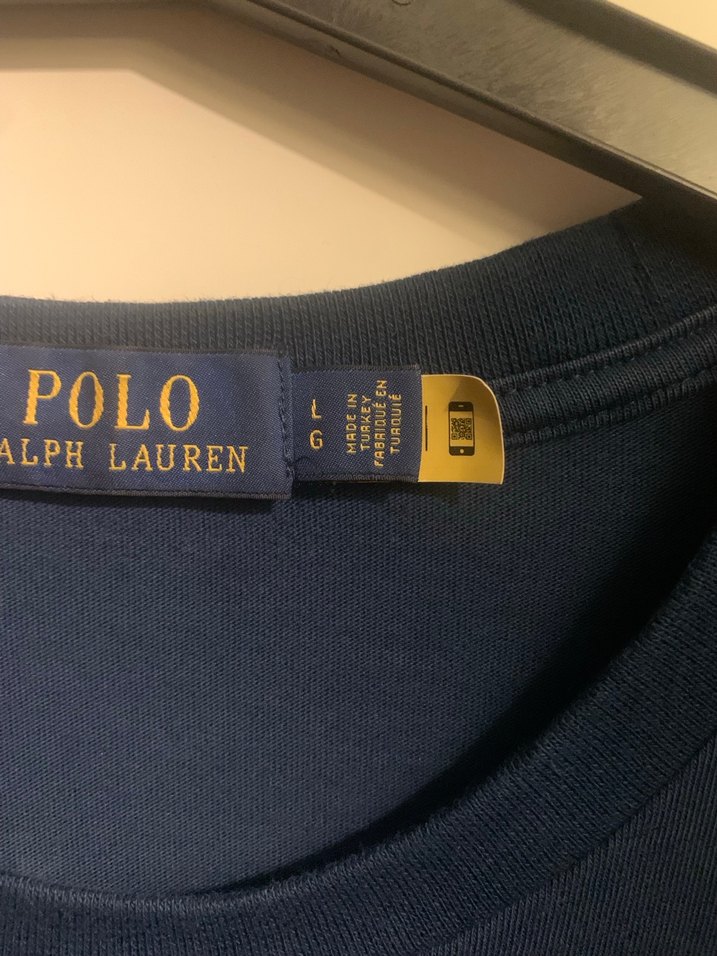 Polo Ralph Lauren markalı, kısa kollu, baskılı, lacivert renkli, yumuşak ve sıcak kumaştan yapılmış, sportif ve günlük stil için uygun, vücuda oturan erkek tişörtü.