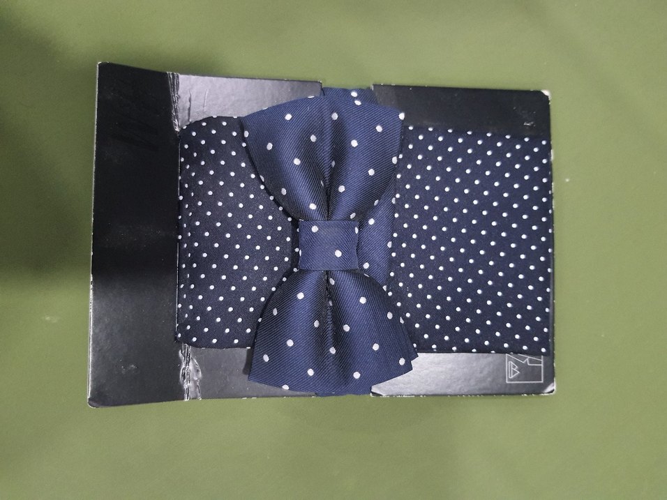 Lacivert zemin üzerine beyaz puantiyeli, sentetik kumaştan çocuklar için papyon.