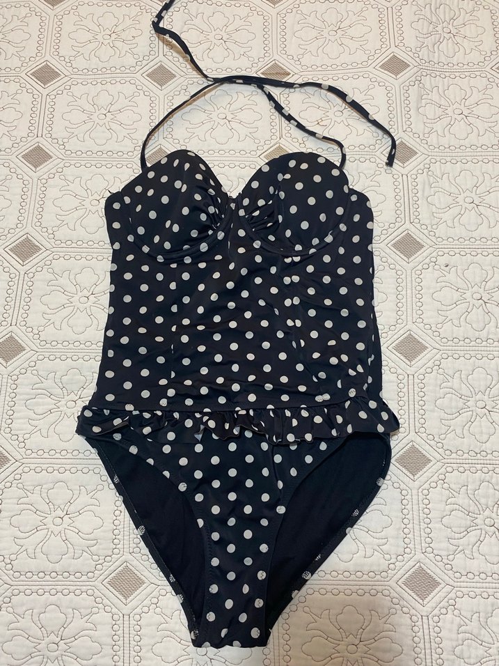 Lacivert puantiyeli, bağlamalı mayo.