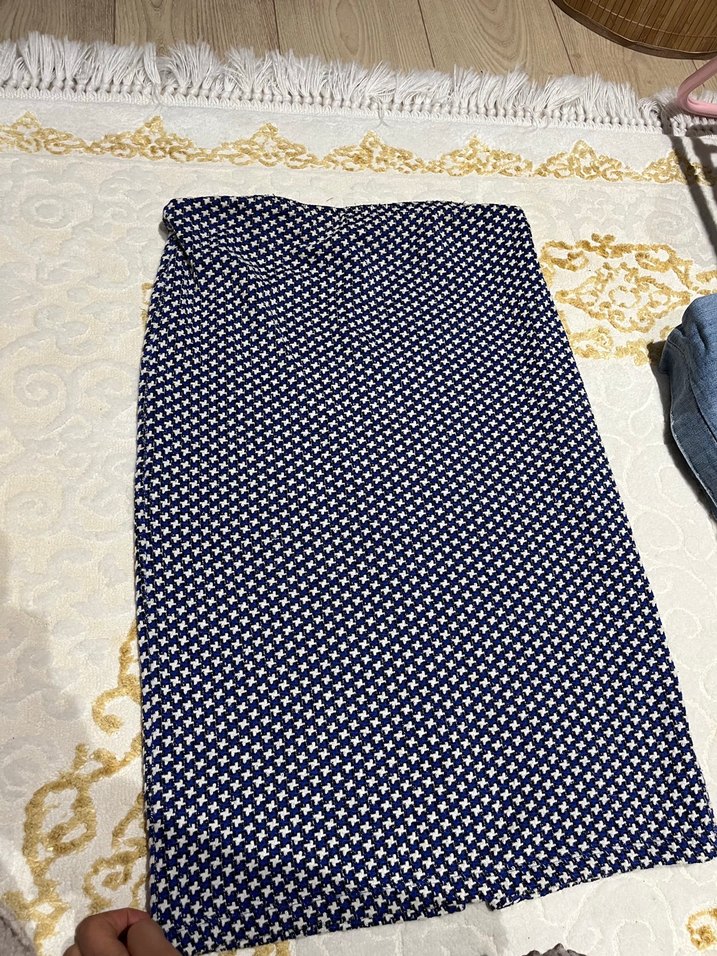 Lacivert renkte, puantiyeli desene sahip, piliseli ve regular fit hamile eteği. Sentetik kumaştan üretilmiş, günlük kullanıma uygun sade ve şık bir modeldir.