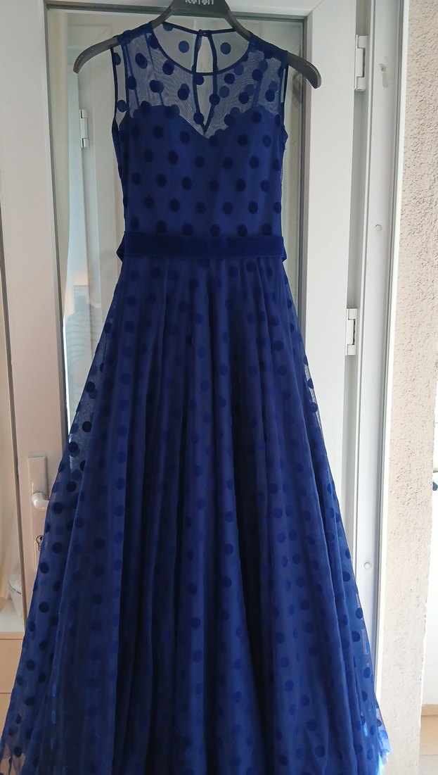 Lacivert Puantiyeli Uzun Abiye Elbise mezuniyet gece elbisesi