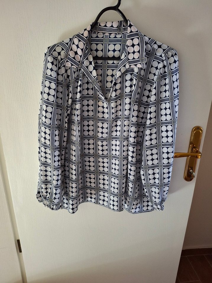 Lacjvert beyaz puantiyeli,uzun kollu, Vyakalı, bol kesim kadın gömleği. Günlük kullanıma uygun, çağdaş ve vintage tarzda.olcu 70x70cm