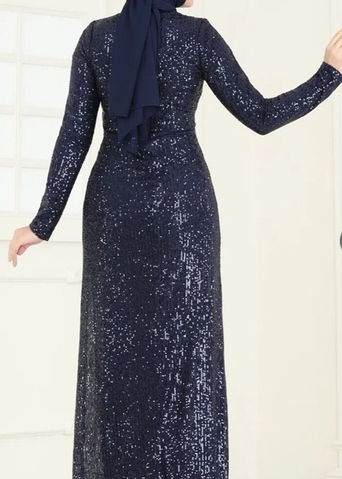 Lacivert pul payet abiye elbise