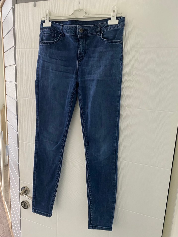 Lacivert renkli, rahat kesim ve normal boyda kadın denim pantolon, günlük sokak modası için zahmetsiz şıklık sunar.