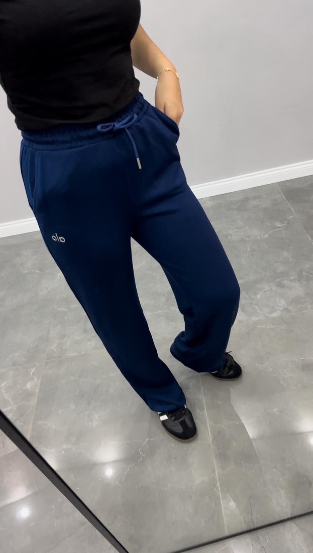 Lacivert, rahat kesim, bağcıklı bel ve yumuşak kumaşlı kadın eşofman altı. Spor ve günlük kullanım için midi boyda, zahmetsiz şıklık sunar. ♀️