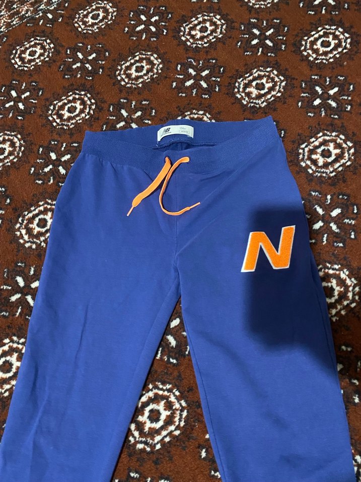 Lacivert, rahat kesim ve midi boyda kadın eşofman altı, baskılı detay ve turuncu bağcıklarla yumuşak kumaştan spor şıklık sunar. ♀️