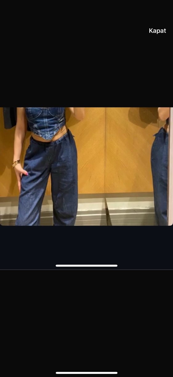 Gündelik kullanıma uygun, midi boyda, rahat kesim ve drapeli lacivert kot pantolon s de olur
