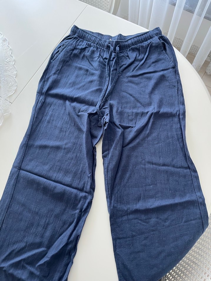Lacivert Rahat Kesim Keten Kadın Pantolon