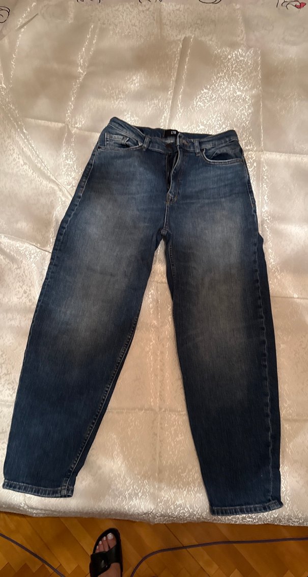 Lacivert renkte, rahat kesim ve normal midi boyda kot pantolon, günlük rahat şıklık için uygun.