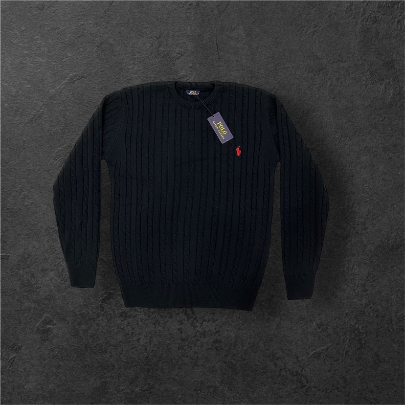 Lacivert renkli, uzun kollu, bisiklet yaka ve örme detaylı erkek kazak. S m l xl xxl bedenleri mevcuttur