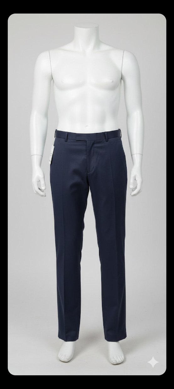 Lacivert renkte, kemerli ve regular fit erkek pantolon. Sentetik kumaştan üretilmiş, ofis ve günlük sokak tarzına uygun, desensiz ve normal boyda. Beden: 52