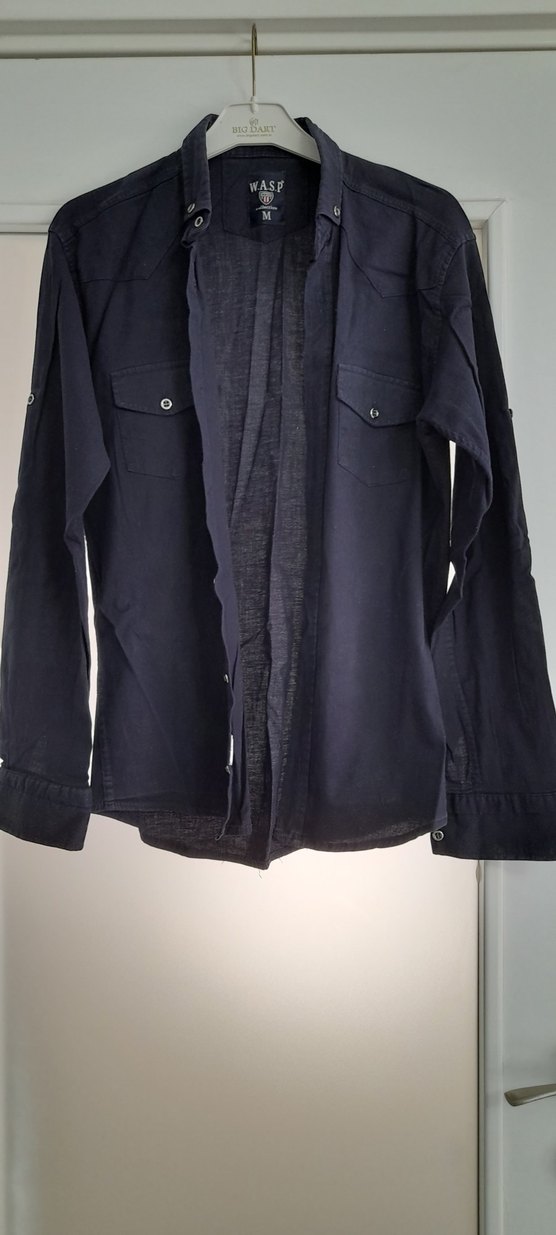 Lacivert renkte, keten kumaştan yapılmış, düğmeli uzun kollu ve regular fit erkek gömleği. Notch yakalı ve midi uzunlukta, günlük ve sokak stili için uygun.