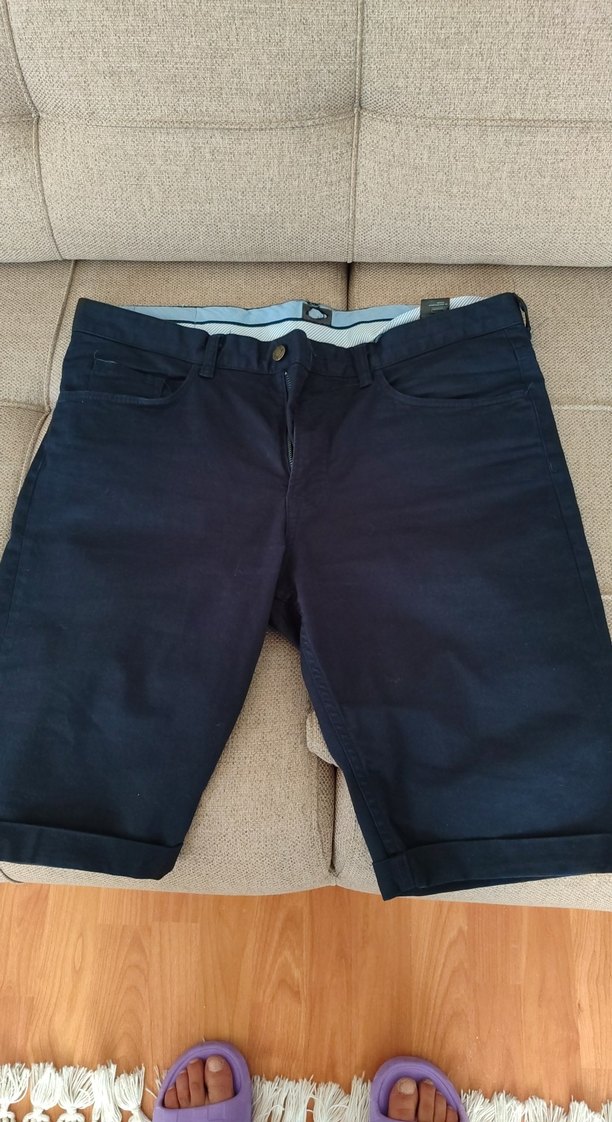 Lacivert kot bermuda şort, regular fit ve midi boyda, kemerli bel detaylıdır. Günlük kullanıma uygun, trend sokak stili için ideal.