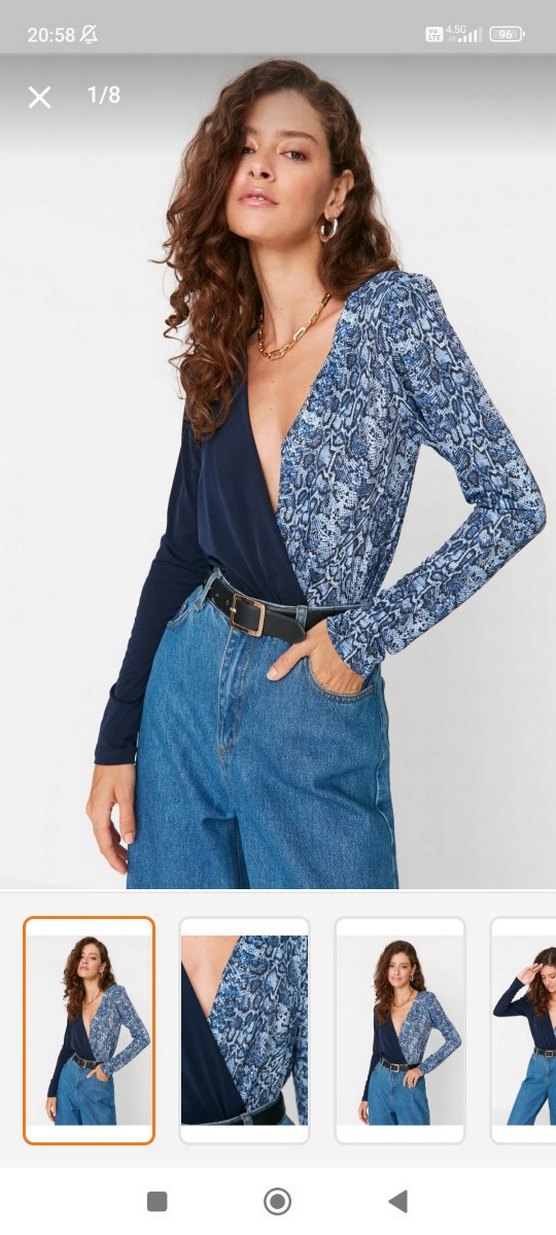 Kadınlar için yılan desenli, , V yakalı, uzun kollu, çıtçıtlı badi bir kere giyildi temizdir