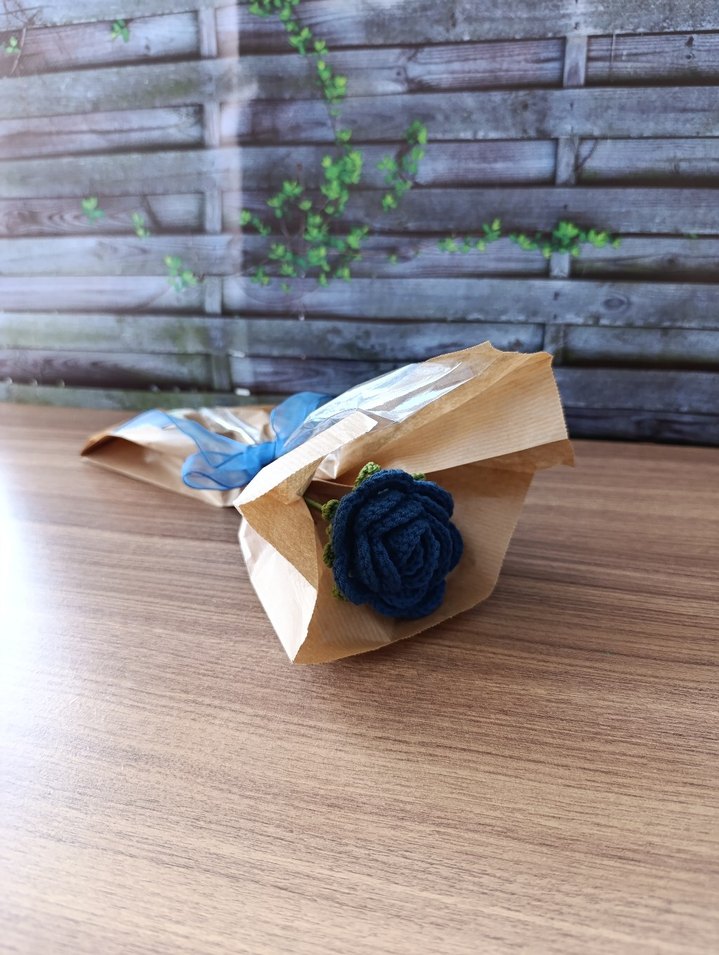 Koyu lacivert renkte örülmüş buket. öğretmenler günü hediyesi