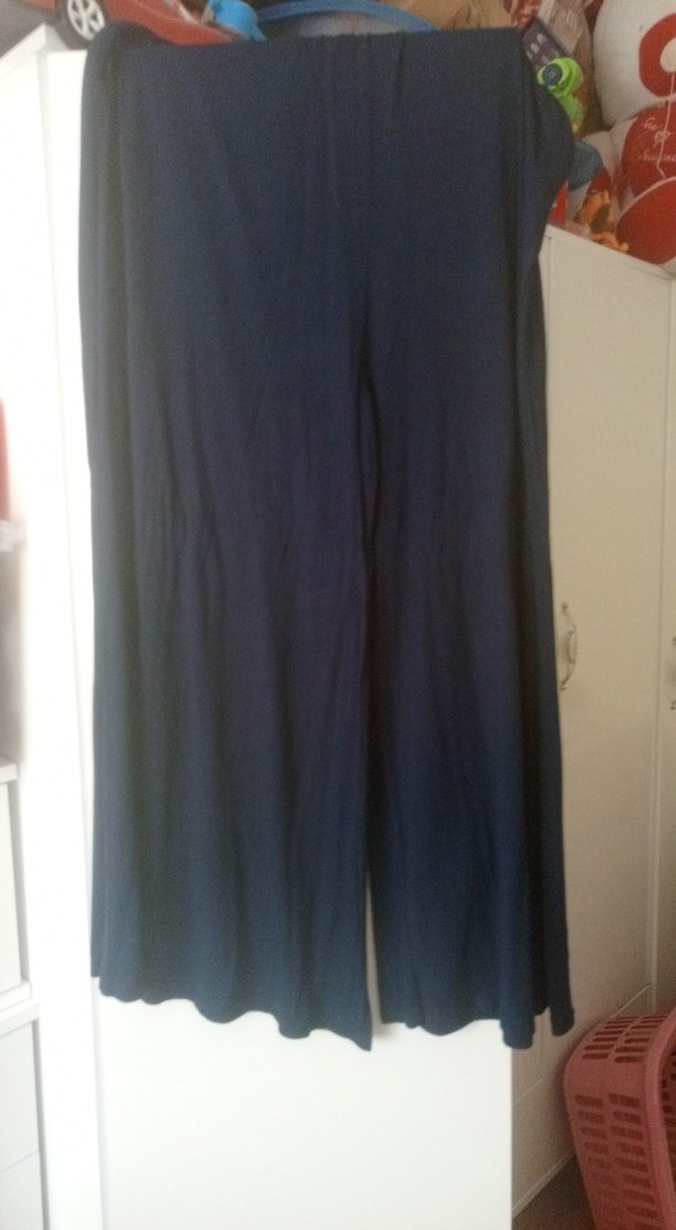 Lacivert renkte, uzun ve salaş kesim kadın pantolon. İnce ve ipeksi kumaştan, drapeli tasarımıyla gündelik kullanıma uygun.
