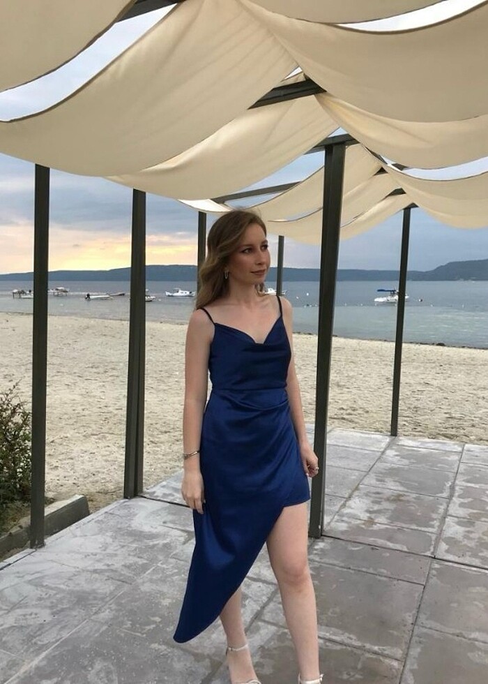 Lacivert saten abiye