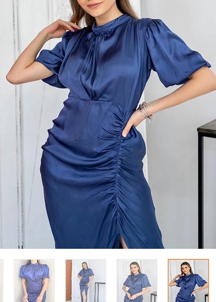 Lacivert saten elbise