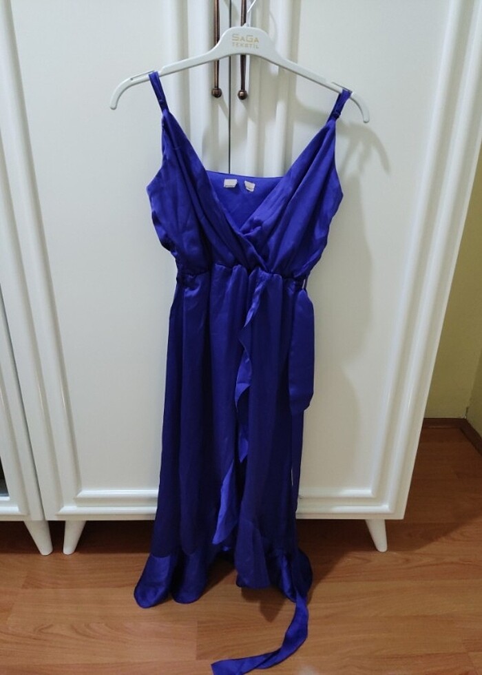 Lacivert saten elbise