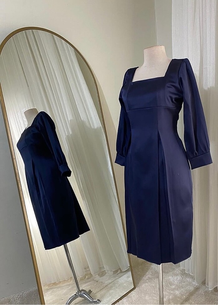 Lacivert Saten elbise