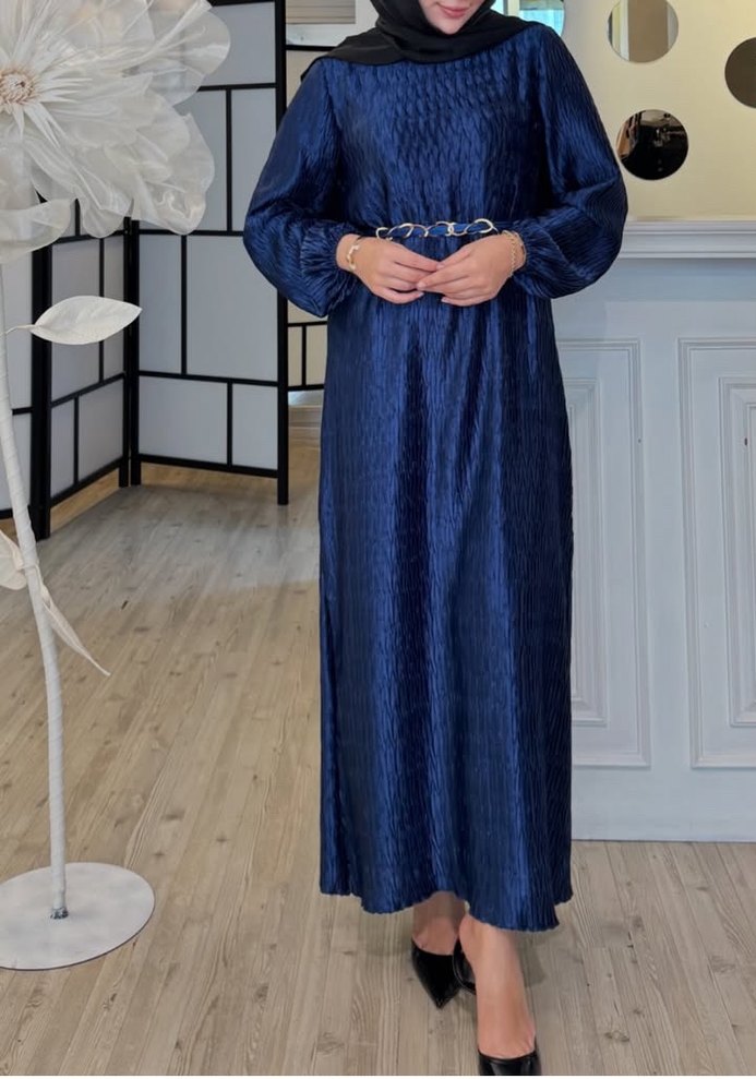 Diger markanın saten yüksek yakalı ve uzun kollu, bol kesim lacivert uzun elbisesi. Parlak tie-dye deseni ve sentetik kumaşıyla ofis için uygundur. Özel günlerinizinde vazgeçilmezi olur Bedenler 1-2 olarak mevcut istediğiniz bedene ilan açtırın lütfen 36-46 beden uyumludur