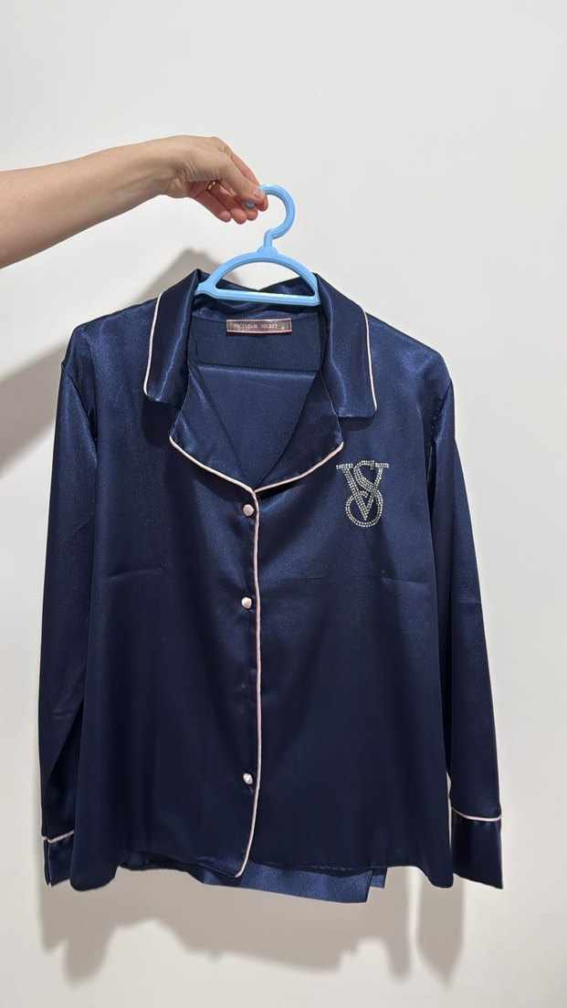 Lacivert saten Uzun Kollu Pijama takımı