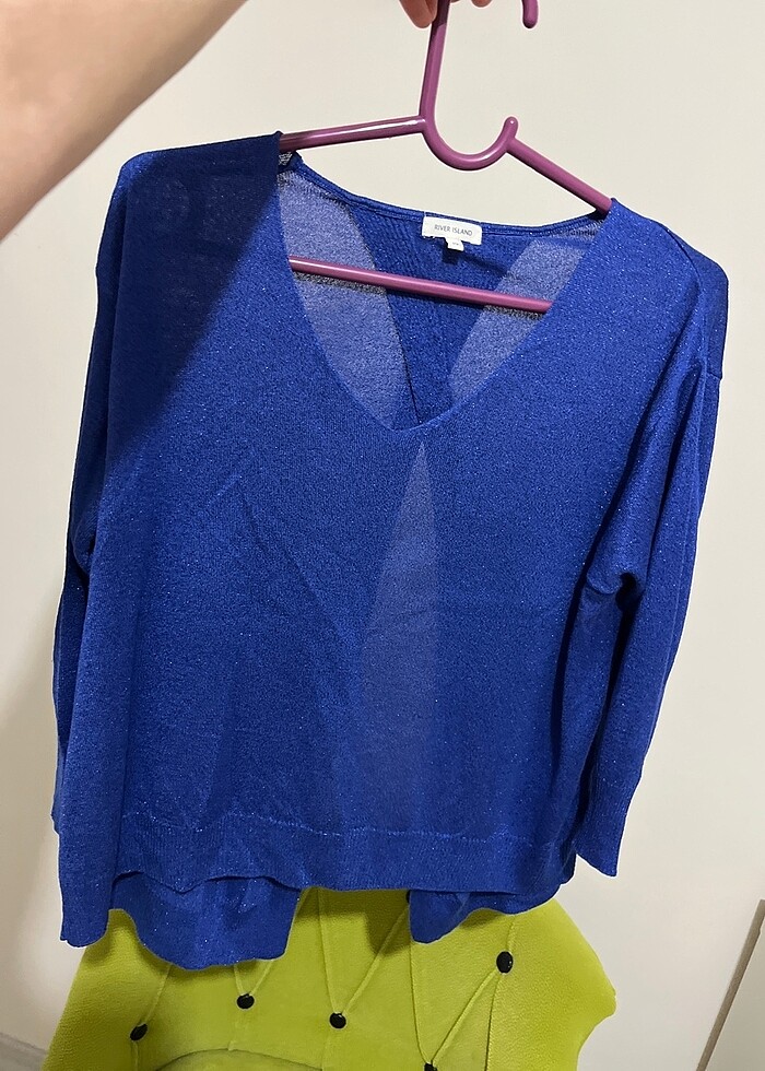 Lacivert simli bluz