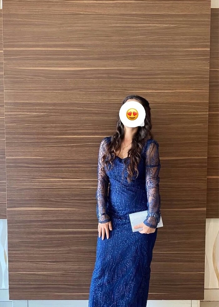 Lacivert simli elbise
