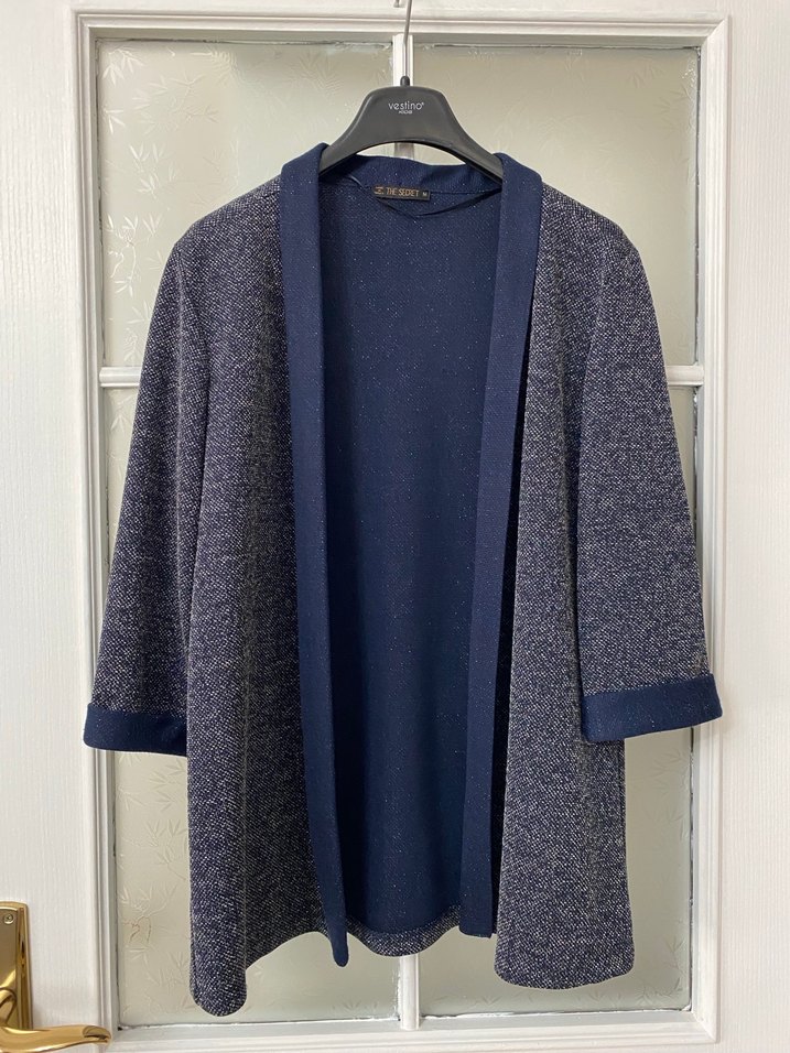 Lacivert simli şal yaka kadın penye ceket