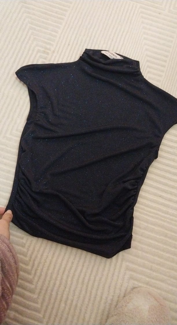 lacivert simli şık bluz kolsuz