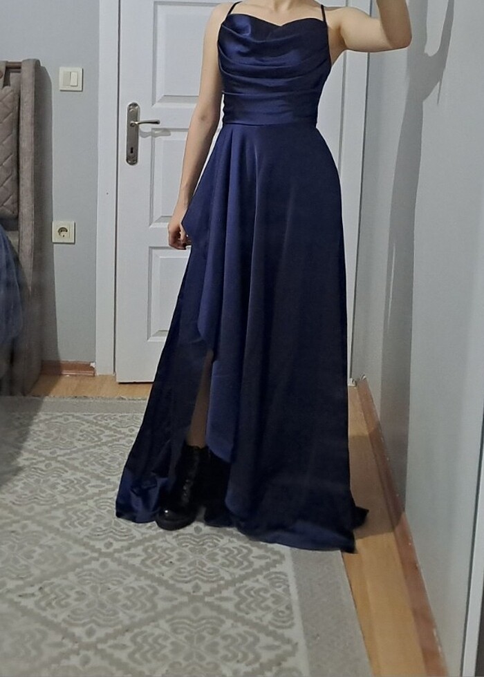 Lacivert sırtı açık abiye elbise