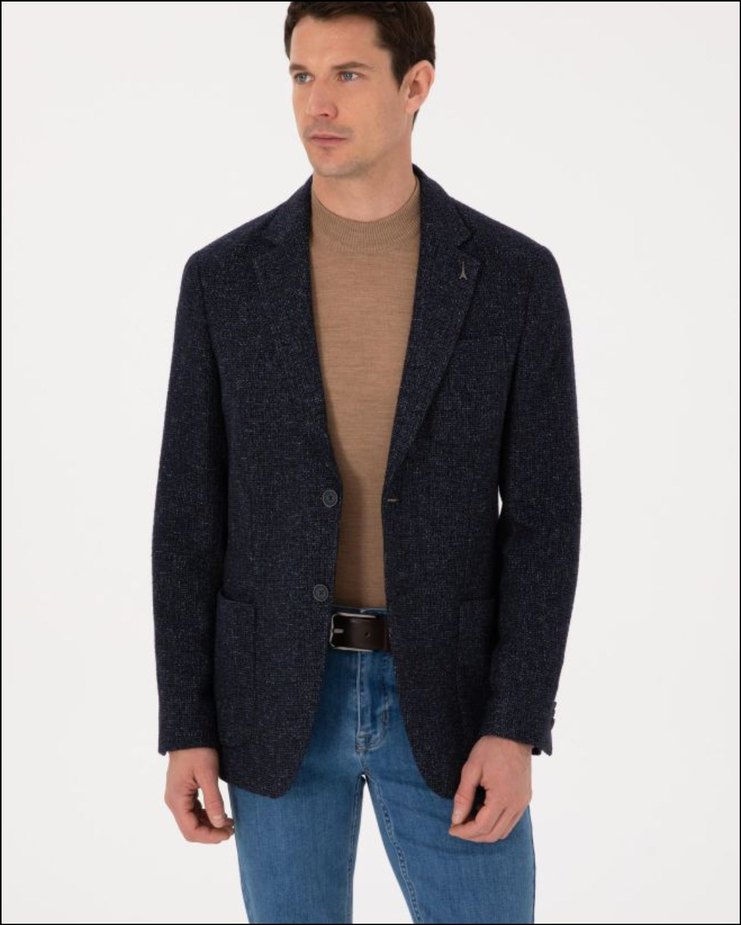 Lacivert Slim Yün Karışımlı Spor Ceket