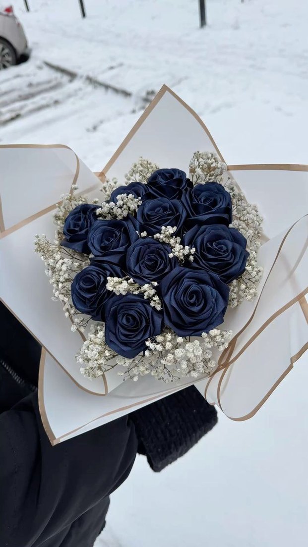 lacivert solmayan gül buketi istenilen renk yapılır. birçok model mevcuttur. Instagram @sweetbloom.gifts