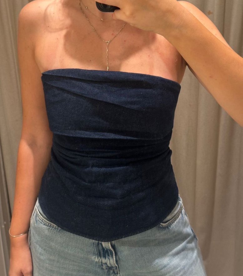 Lacivert Straplez Drapeli Denim Büstiyer