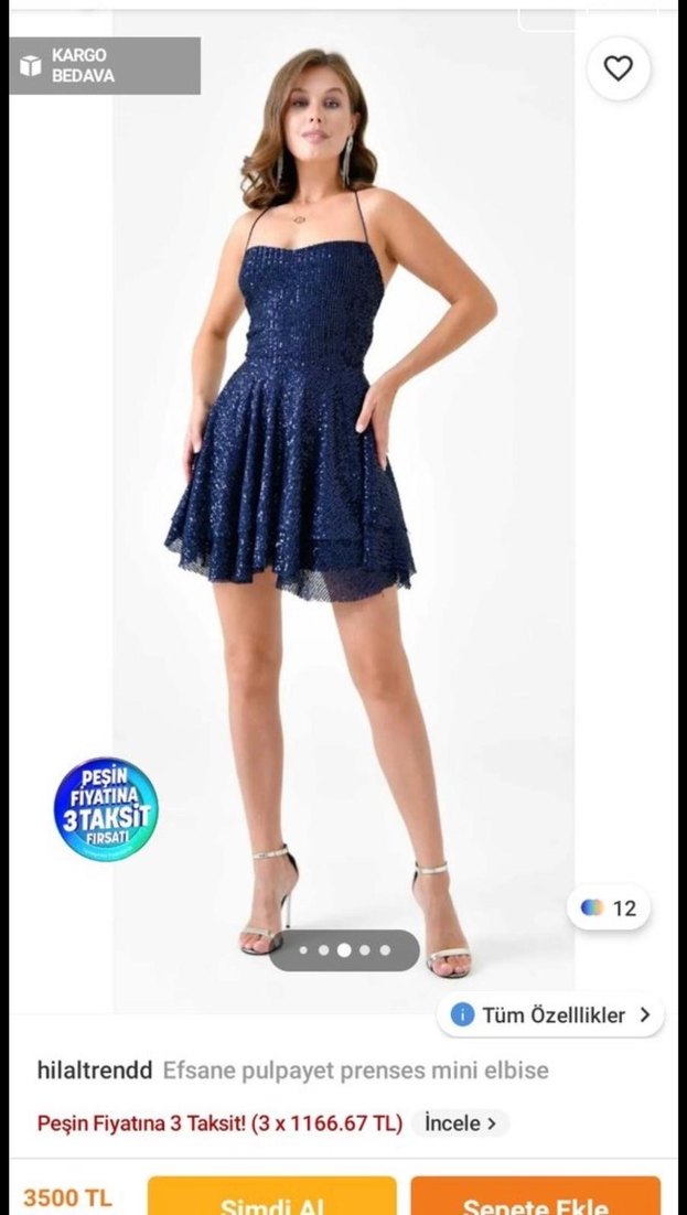 Lacivert straplez mini elbise, dantel detaylı ve pulpayet işlemeli, belden oturan ve etek kısmı volanlıdır. Romantik akşamlar için uygundur. ✨