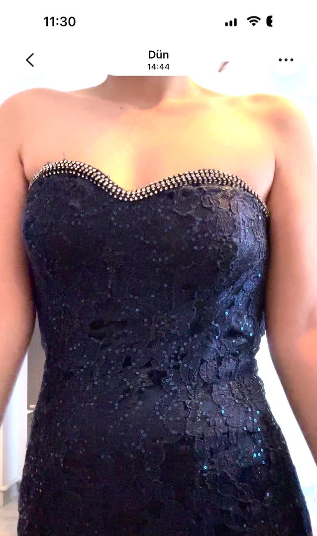 Dantel dokulu Payet işlemeli Astarlı Balık model Starplez Lacivert Uzun Abiye Birkaç yerinde hafif tüylenme vardır