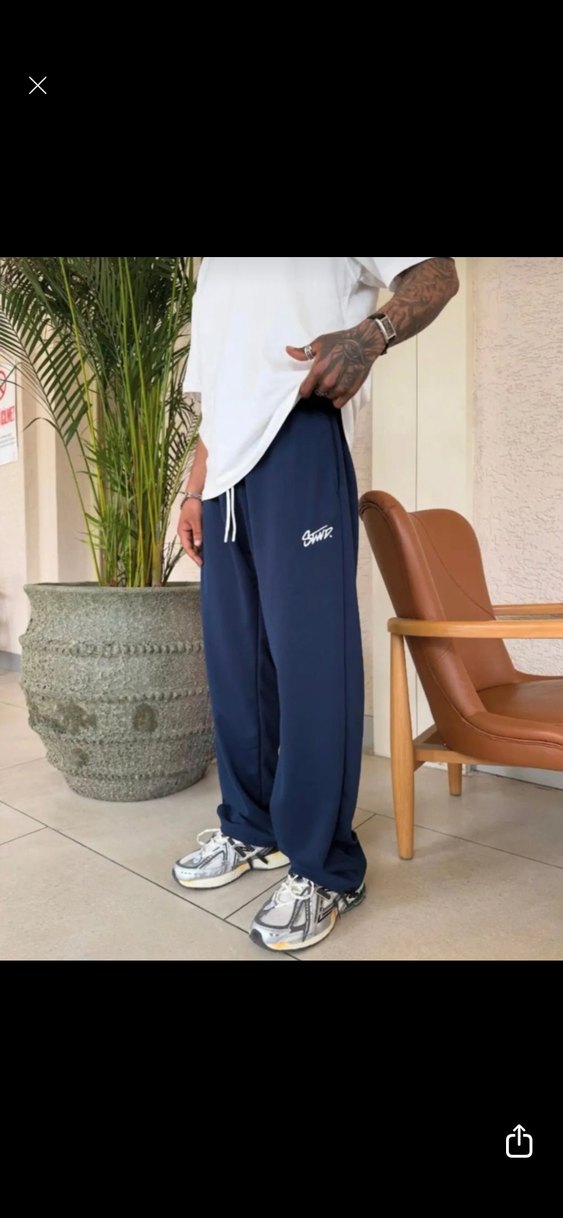 Lacivert renkte, rahat kesim erkek eşofman altı, baskılı desenli ve denim kumaştan üretilmiştir. Günlük kullanım için uygundur.