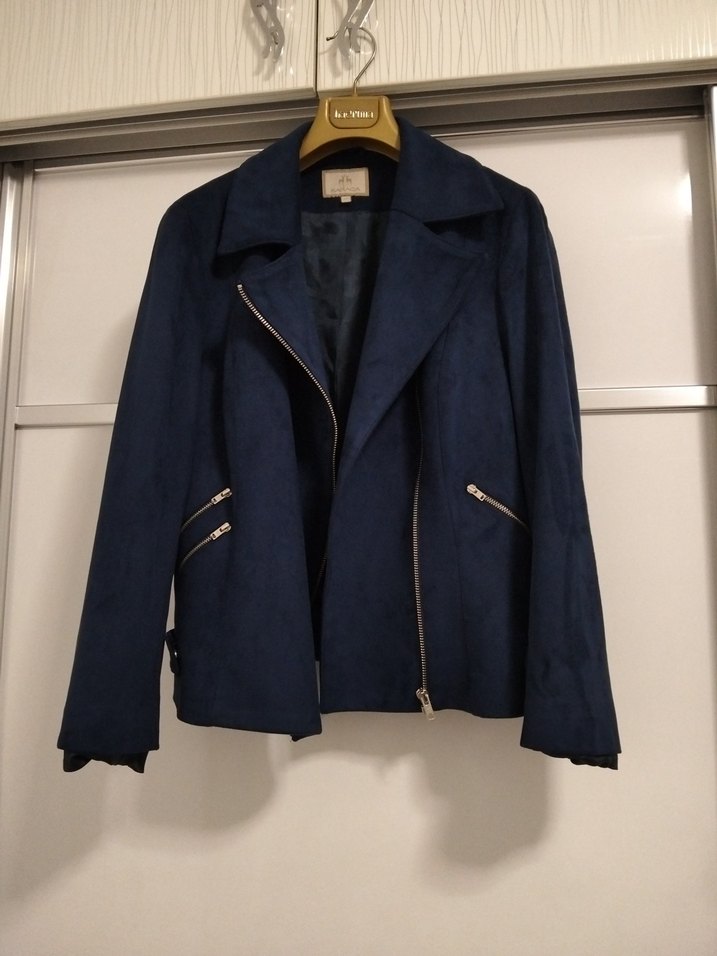 Lacivert Süet Fermuarlı Kadın Deri Ceket