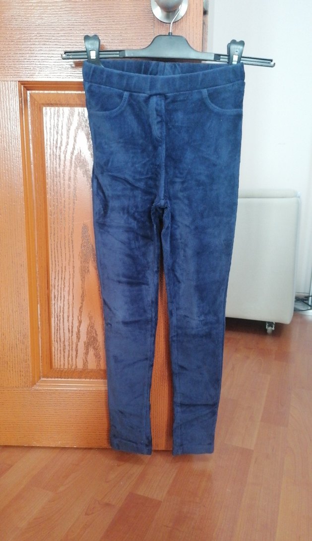 Lacivert koyu renkte, süet dokulu, elastik bel bantlı ve düz desensiz kız taytı.