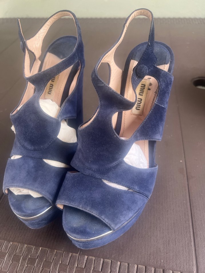 Lacivert süet malzemeden yapılmış, tokalı platform topuklu kadın ayakkabısı. Minimalist ve çağdaş kesim, romantik akşamlar için uygun.