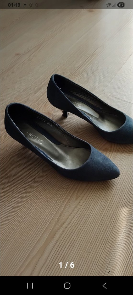 lacivert süet malzemeden yapılmış, elastik detaylı, sivri burunlu ve ince topuklu stiletto. Ofis kullanımı için klasik ve şık bir tasarım.