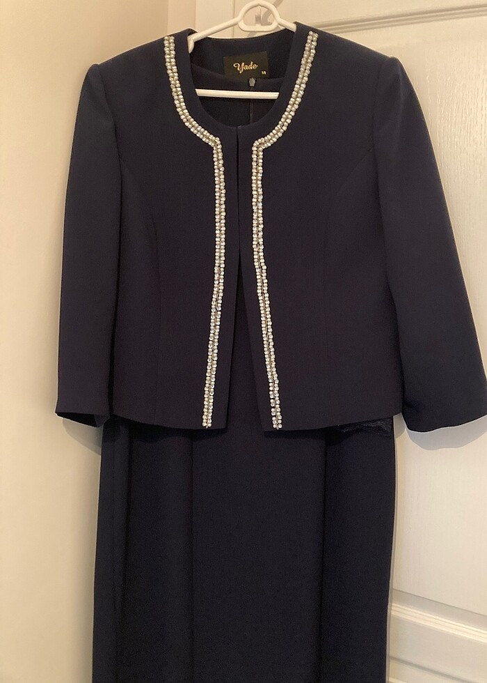 içi lacivert kolları dantel detaylı elbise hem tek parça hem de kısa ceketi ile çok sık ve sorunsuz bir takım cekette inci detayları ile zarif bir model olmaktadır ölçü verilir