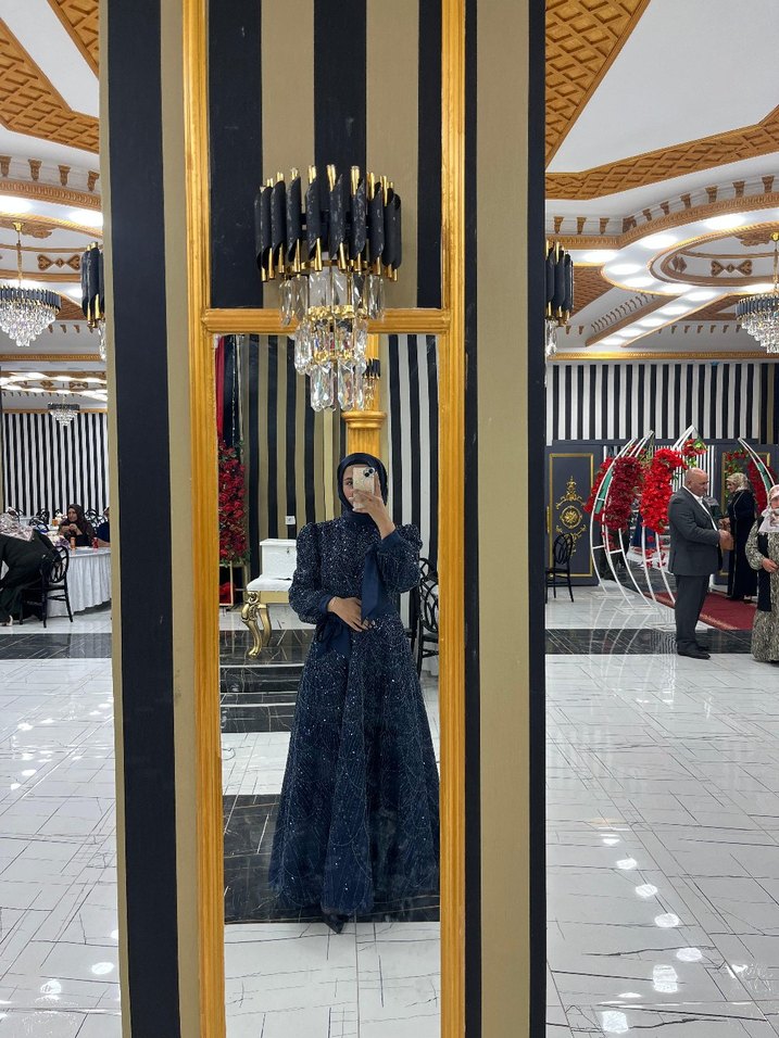 lacivert taşlı tesettür abiye